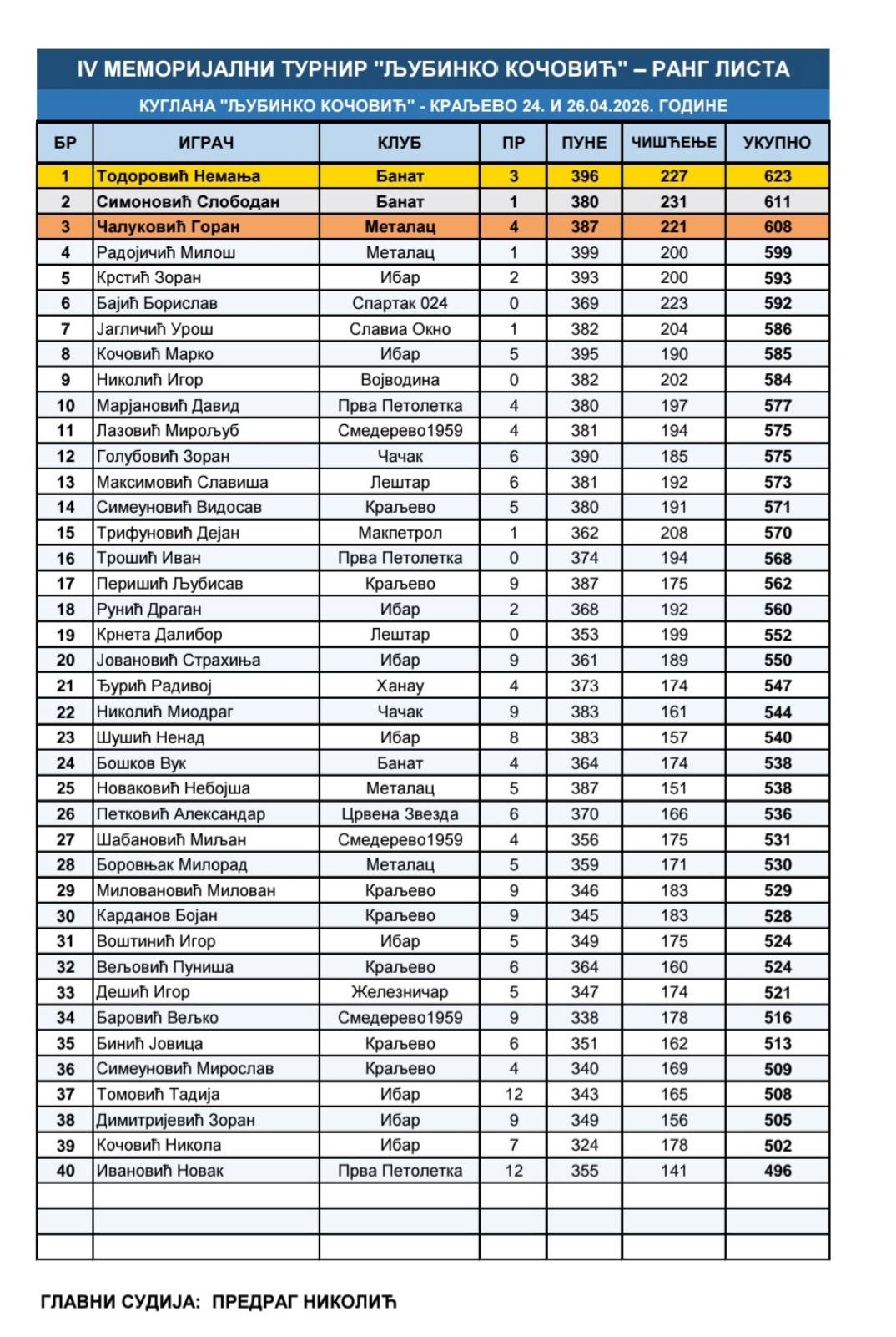 | POJEDINAČNO PRVENSTVO SRBIJE ZA SENIORE | KOMBINACIJA | KOSTUR |